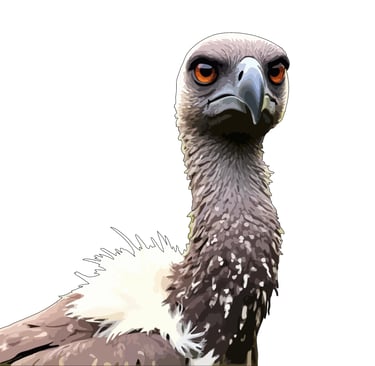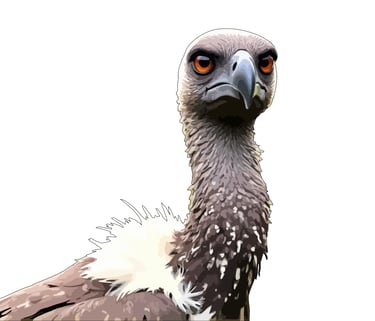 This imposing vulture fixes you with an unwavering, amber-eyed stare that seems both ancient and knowing, its bald head and powerful hooked beak conveying the raw majesty of Africa's essential scavenger.