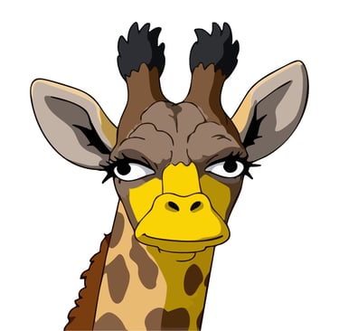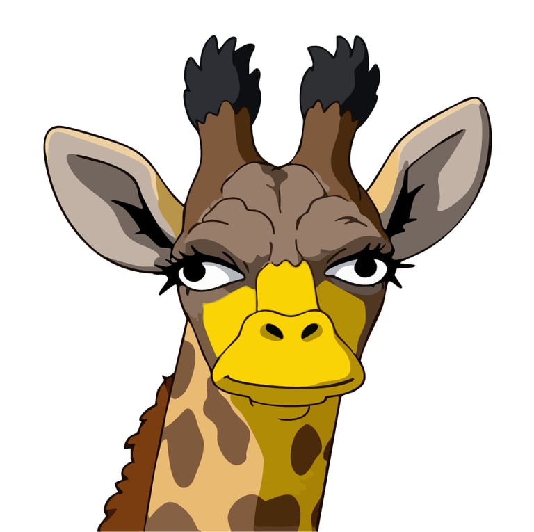 This spirited baby giraffe meets your gaze with unmistakable attitude, its bright golden coloring and prominent dark-tipped horns creating a portrait that's equal parts adorable and unexpectedly fierce.