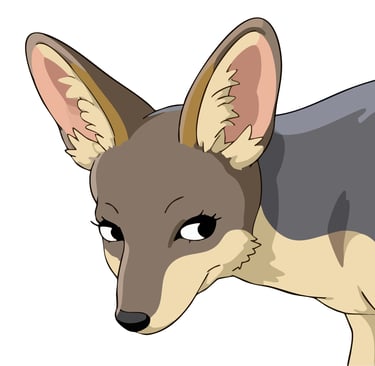 A sleek black-backed jackal turns to meet your gaze with keen, intelligent eyes, its alert expression and distinctive large ears rendered in muted earth tones that capture the cunning elegance of Africa's most adaptable predator.