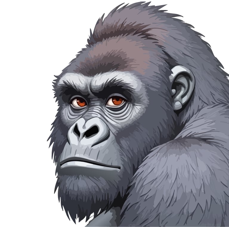 This powerful silverback gorilla fixes you with an intense, amber-eyed stare that seems to peer directly into your soul. The close-up portrait captures every detail of his weathered face and thick fur, creating an almost uncomfortably intimate moment of connection between human and our closest relative in the animal kingdom.