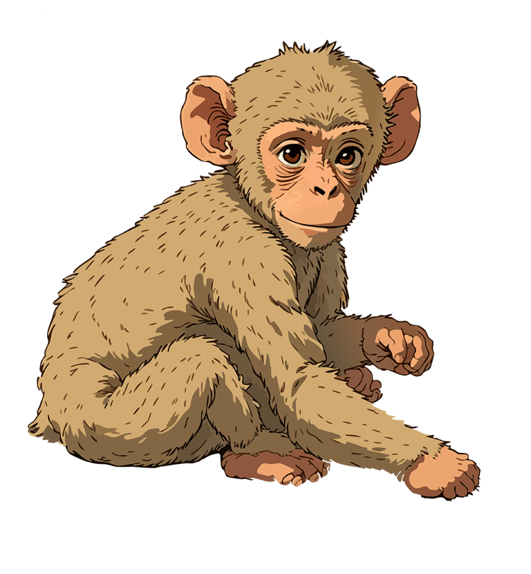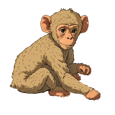 A curious baby baboon regards you with wide, innocent eyes and a gentle smile, its youthful features rendered in soft browns that capture the playful spirit and endearing vulnerability of Africa's young primates.