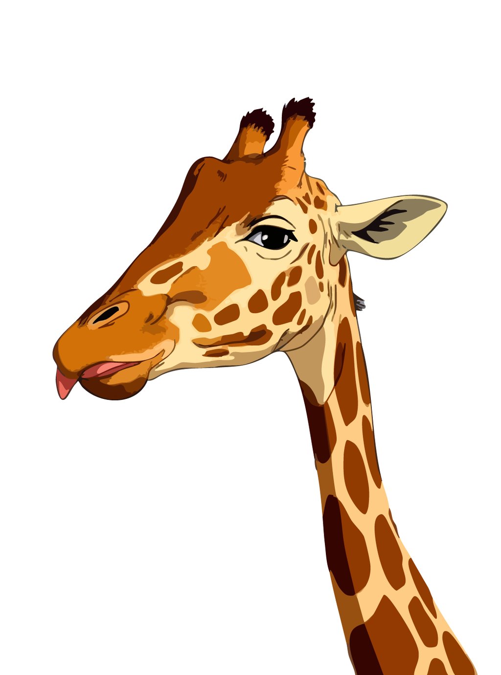 This curious giraffe turns its gentle gaze directly toward you, tongue playfully extended, creating an endearing moment of connection that showcases both the creature's towering grace and surprisingly expressive personality.