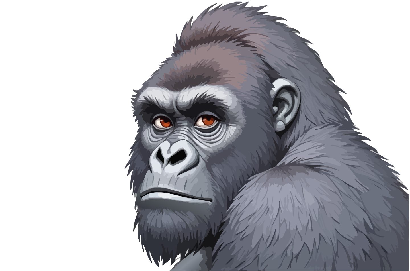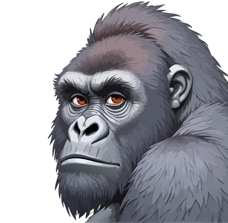 This powerful silverback gorilla fixes you with an intense, amber-eyed stare that seems to peer directly into your soul. The close-up portrait captures every detail of his weathered face and thick fur, creating an almost uncomfortably intimate moment of connection between human and our closest relative in the animal kingdom.